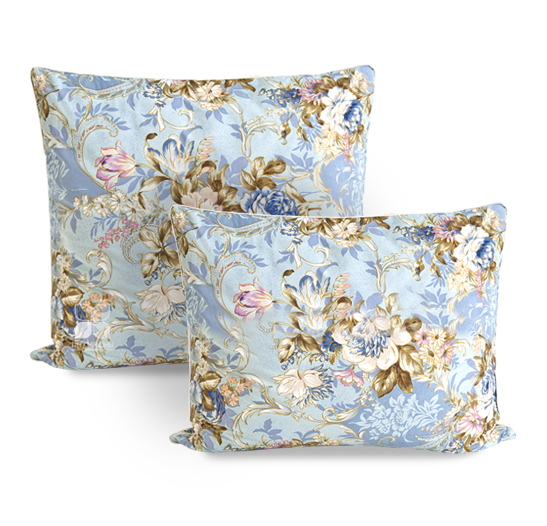 Эта экономичная по цене подушка изготовлена из полупуха 2 категории, выполнена из пуходержащего хлопкового тика с набивным цветочным рисунком, по краю подушки отделка белым кантом.
